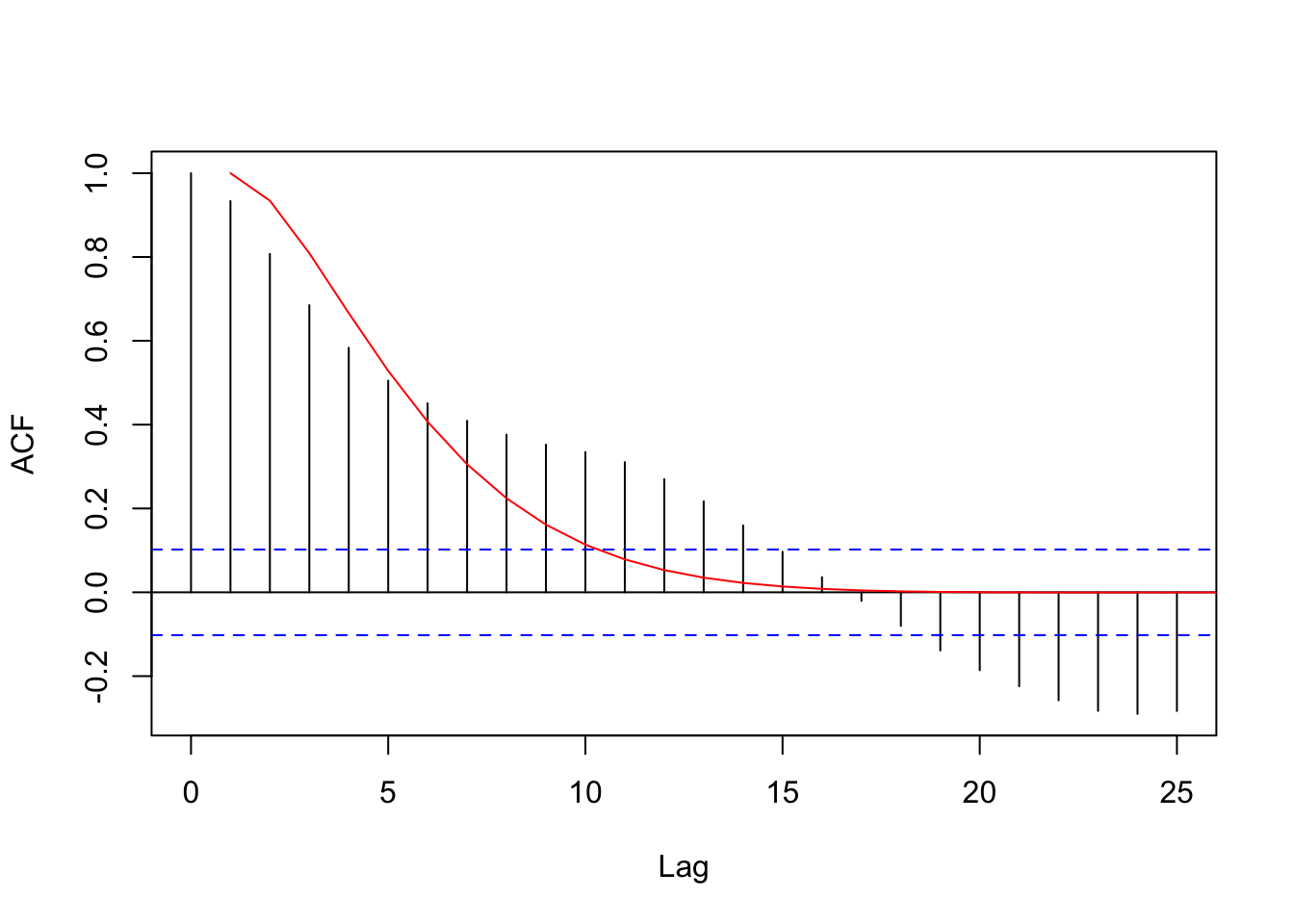 - Repeat 1-2 for lags 2, 3, …, replacing \(e_{t - h}\) with \(\tilde{e}_{t - h}\)